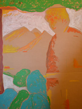 Les tableaux, les boites à secret, les bois flottés emmaillotés de tissus, les petits et légers montages aériens d’étoffes et cartons lui volent au visage, comme les étourneaux de tout à l’heure qui auraient eu l’autorisation divine de se baigner dans les palettes du paradis, le cœur léger.