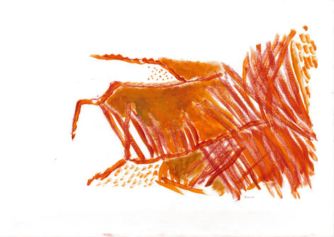 L'appartement d'Armand Scholtès, à Nice, était à la fois son lieu de vie, son atelier, sa galerie et son œuvre. Les mêmes motifs et les mêmes couleurs se retrouvaient sur les grandes toiles, les papiers, les objets, branches et bouts de bois, et les murs. Les colorations mêlaient des ocres, des rouges éteints, des noirs, des bleus et des verts, parfois. Les motifs, simples, répétitifs, me rappelaient par moments cette "archéologie du signe" à laquelle Maccheroni m'avait habitué, croix, X et cercles. Mais la comparaison s'arrêtait là : ce qui était série et programme chez l'un était prolifération chez l'autre, avec, parfois, une impression d'hésitation, d'inachevé, de tremblement, de superposition. Les motifs s’enrichissaient de spirales, lignes brisées, points disposés comme aléatoirement, lignes horizontales, traits verticaux. J’étais fasciné, sur telles toiles, par le développement et l’emplacement des traces les plus simples, en particulier les petits traits horizontaux, qui m’en rappelaient d’autres, issus du fond des âges ceux-là, et qui semblaient explorer comme une origine du geste à travers l’impact minimum du pinceau sur la toile, et qui, en même temps, ressemblait à un balbutiement de numération... J’en ai souvent compté le nombre, du reste, et j’ai toujours été surpris de la constance de certains nombres organisant les grandes horizontales et les petits traits verticaux dans les œuvres d’Armand Scholtès. En outre l'appartement, entièrement orné, m'aspirait dans une rêverie tout à fait différente de celle que je connaissais avec Henri Maccheroni ou de celle qui m’aspirait dans l’atelier de Dejonghe. J'étais accueilli chez un artiste pariétal...
